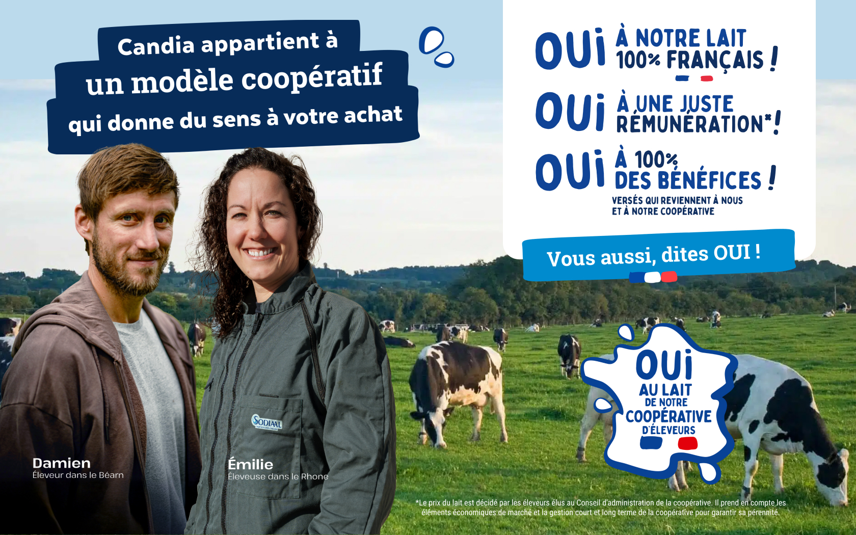 Coopérer, ça ne fait pas le même lait ! Candia, marque de coopérative d’éleveurs laitiers français depuis 1971, s’engage pour transmettre aux générations futures un lait meilleur : POUR LA NUTRITION, POUR LA SOLIDARITÉ, POUR LA NATURE.