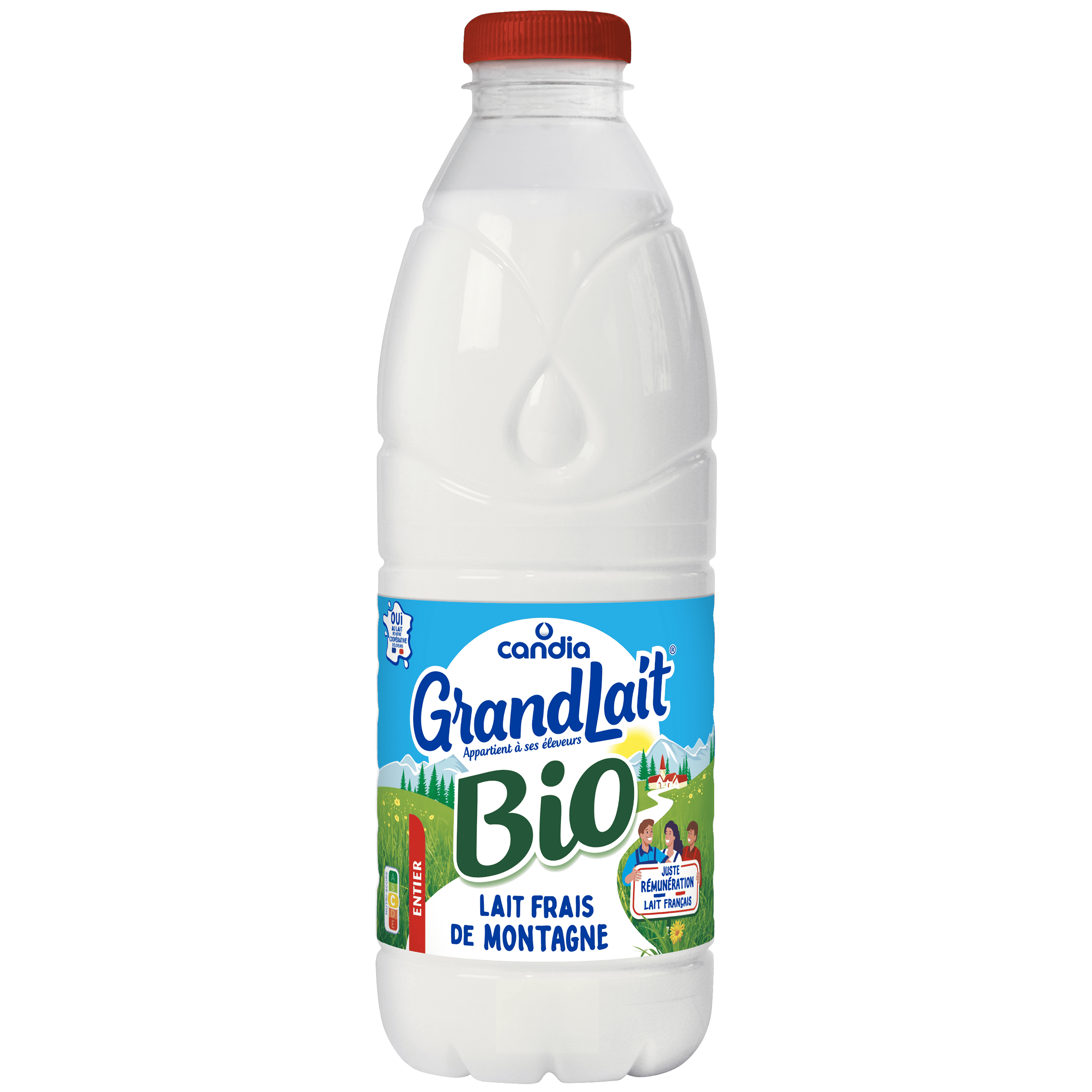 GrandLait Frais de Montagne BIO entier est un lait BIO 100% français. Il provient de fermes situées en zone de montagne, adhérentes à la plus grande coopérative laitière de France, leur garantissant une juste rémunération.