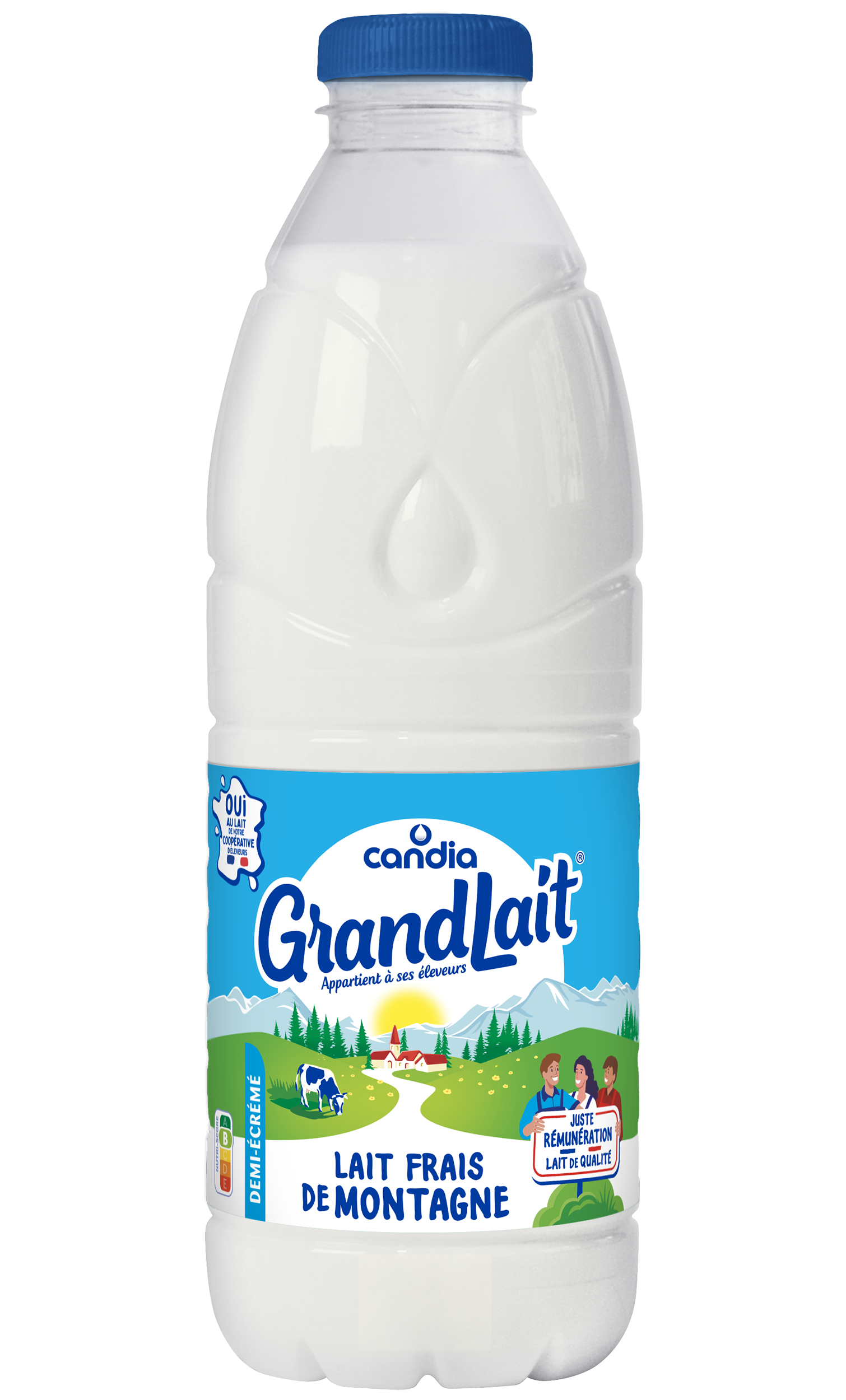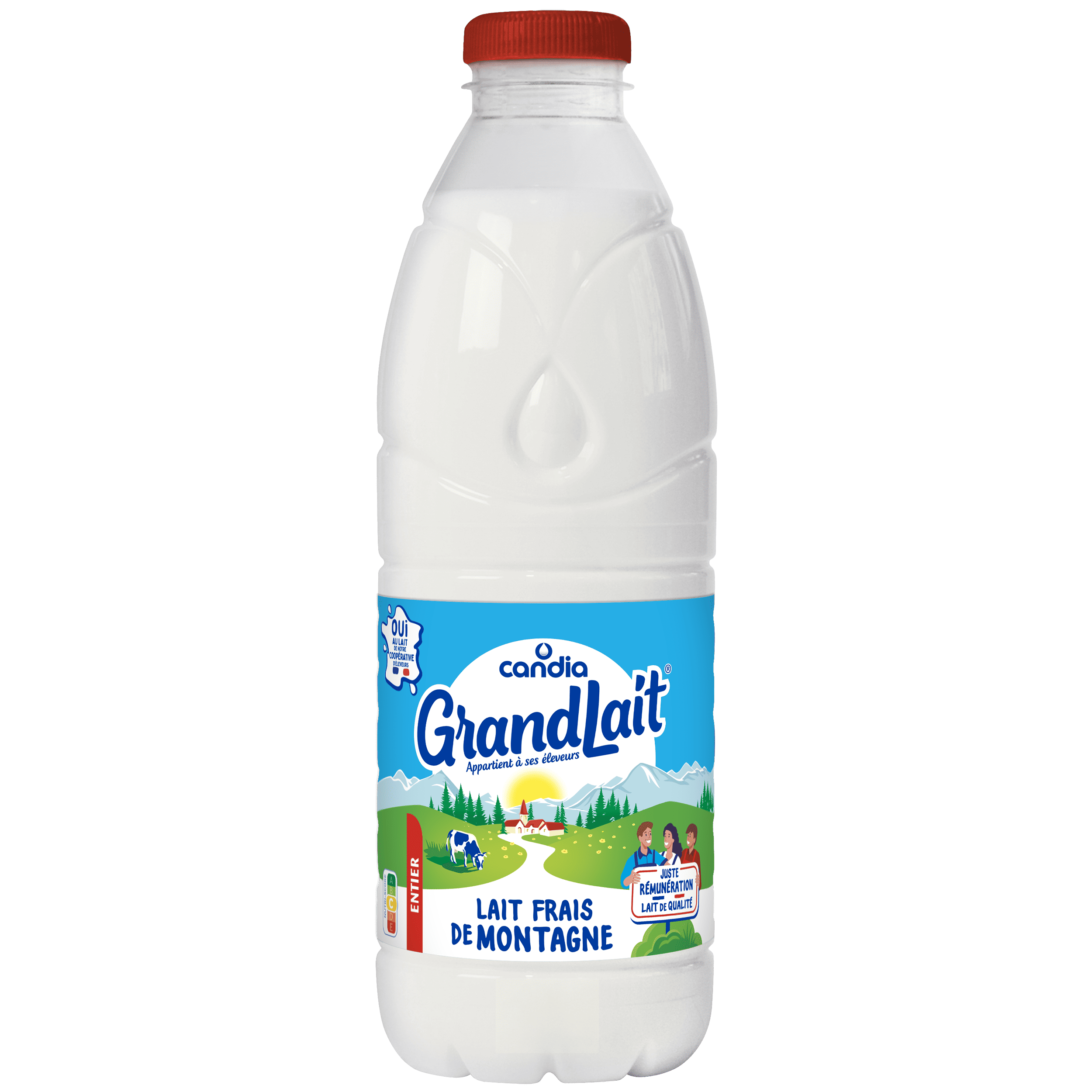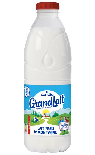 GrandLait Frais de Montagne entier est un lait 100% français. Il provient de fermes situées en zone de montagne, adhérentes à la plus grande coopérative laitière de France, leur garantissant une juste rémunération.
